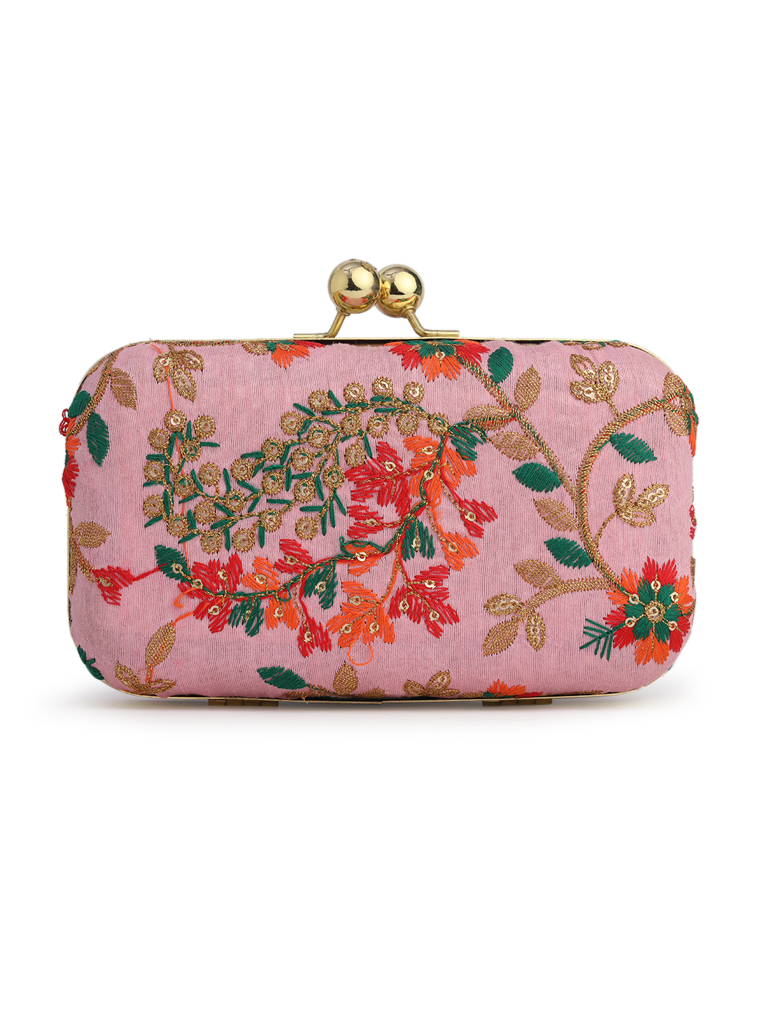Pink & Gold Embroidered Box clutches, Has gold chain shoulder strap, 1 main compartment with twist closure